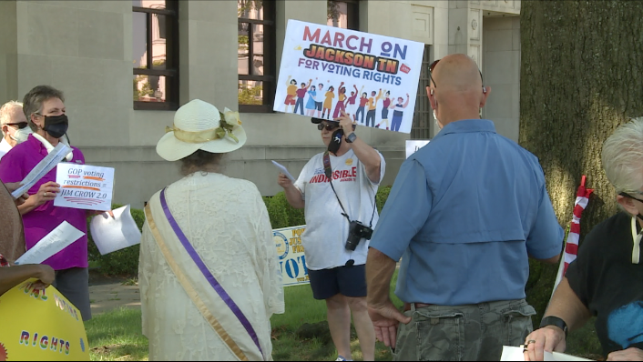 JACKSON,Tenn., — Today, local residents and organizations hosted a voting rights march in downtown Jackson. Today marks 58 years since Martin Luther King held his March on Washington, and today across the country people are gathering for voting rights marches in their own communities. The march is to spread awareness about voters suppression and how it effects American citizens. Indivisible…