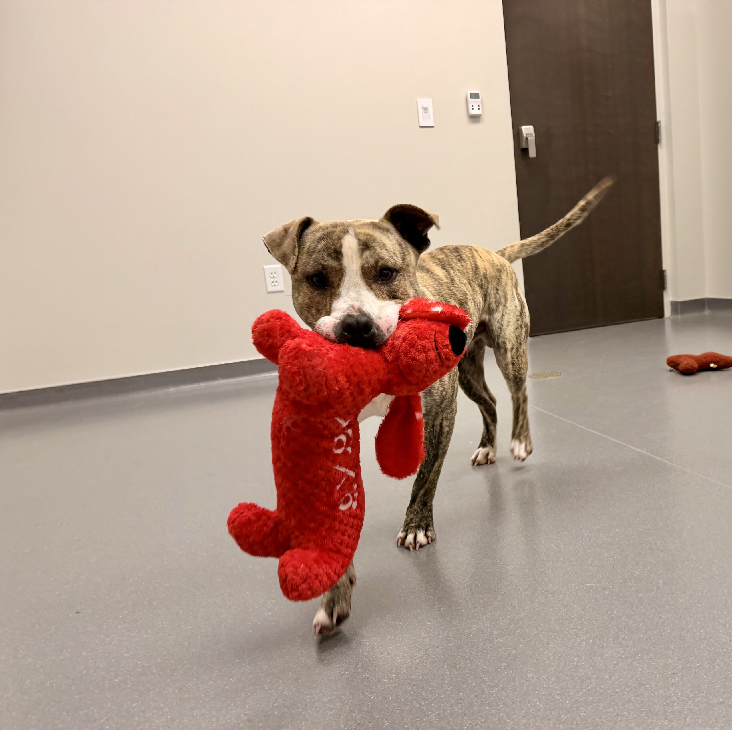 This handsome boy is all about fun and affection! He loves toys, can hear a treat bag rustle from a mile away, and is always ready to play! Sampson doesn’t just want to be near you—he wants to be on you, soaking up all the attention he can get!