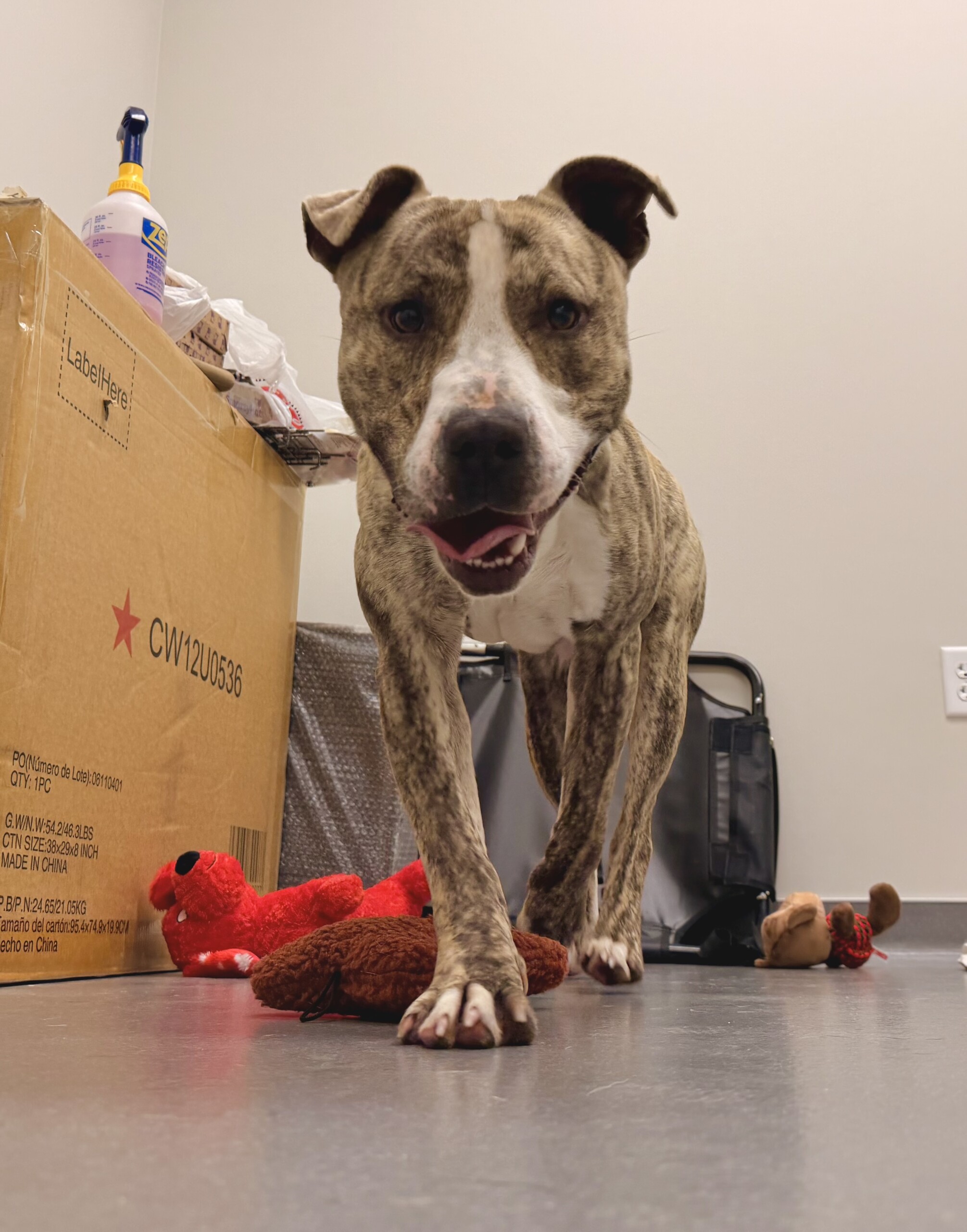 Sampson is a blank slate, ready to learn! He’s looking for a family with dog experience to guide him as he builds skills. He can be a little hesitant on leash in the shelter, but in a calmer environment with consistency, he’ll likely gain confidence quickly. And while he enjoys being picked up…at around 50 pounds, it’s probably better to let him use those four legs.