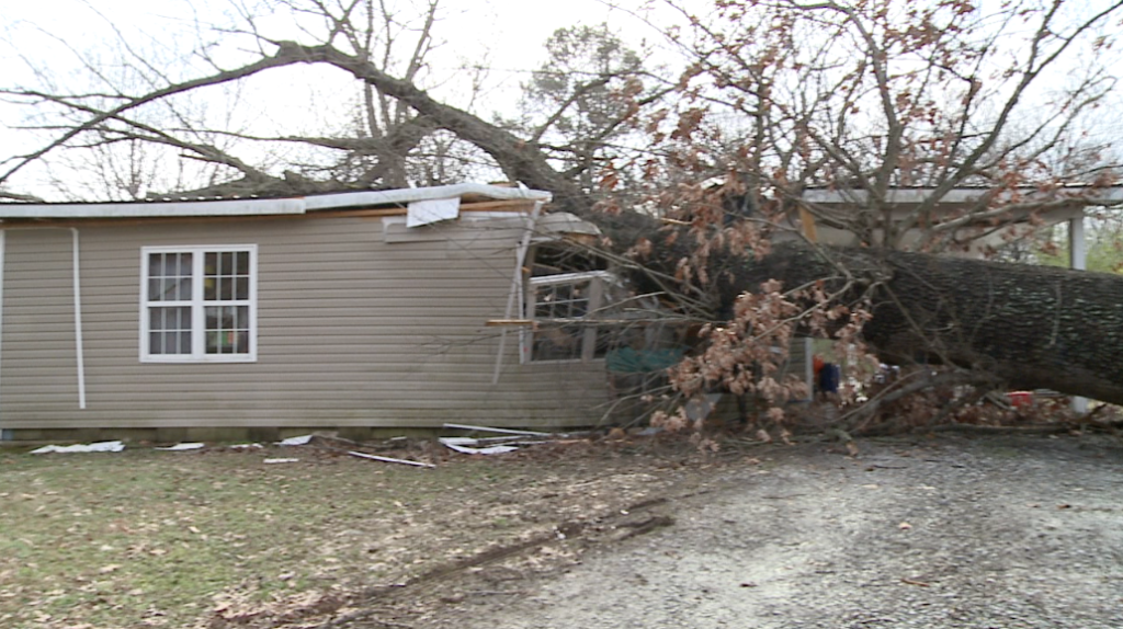CARROLL COUNTY, Tenn. -- A family is forced from their home after a tree slammed through the roof as storms moved through West Tennessee Wednesday morning. Tiffany King and…