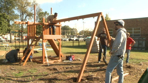 JACKSON, Tenn. -- The Carl Perkins Center's playground got a makeover Friday morning thanks to employees from Lowe's stores in Jackson. "Lowe's called and said they were looking for a…