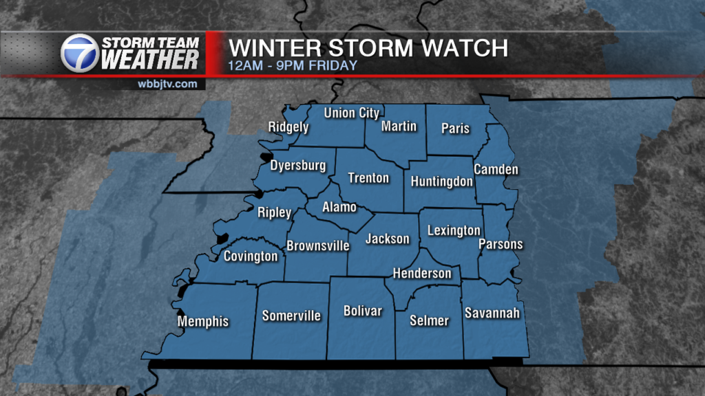 Weather Update – 10:15 p.m. – Wednesday A Winter Storm Watch has been issued for all of West Tennessee going into effect at midnight Thursday night (12 a.m. Friday) and lasting until…