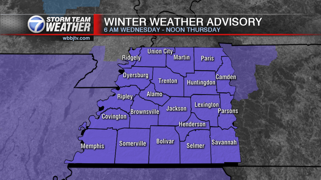 Weather Update 1:50 PM-- A Winter Weather Advisory has been issued for all of West Tennessee from 6 a.m. Wednesday to 12 p.m. noon on Thursday. A Winter Weather Advisory means that periods of snow, sleet, or freezing rain will cause…
